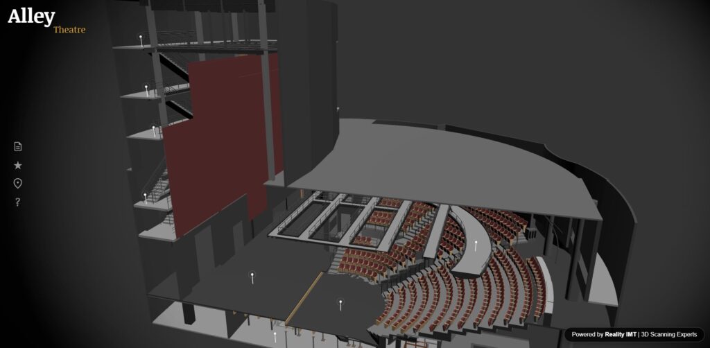 Reality IMT delivered high-precision 3D laser scanning for construction and facility documentation at the historic Alley Theatre in Houston, Texas. The goal was to capture accurate as-built conditions and support a digital twin environment that enables teams to visualize scenic elements and make decisions earlier—impacting design, safety, and budget.